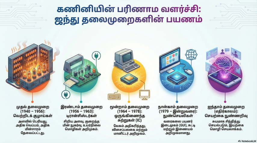 முதலாவது இலத்திரனியல் கணினி உருவாக்கப் பட்டது முதல் இன்று வரையான (அல்லது எதிர் காலத்தில் வர இருக்கும்) கணினி தொழில் நுட்பத்தில் ஏற்பட்டிருக்கும் ஃ ஏற்படவிருக்கும் வளர்ச்சியானது கணினி தலைமுறைகள் என ஐந்து கால கட்டங்களாகப் பிரிக்கப்படுகின்றது.