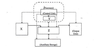(ii) X, Y, Z மற்றும் ஒரு கணினியின் கட்டுப்பாட்டு அலகு ஆகியவற்றின் செயல்பாடுகளை சுருக்கமாக விளக்குங்கள்.
