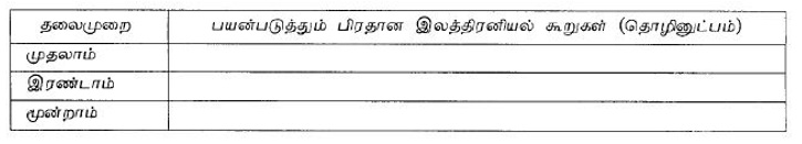 கீழே தரப்பட்ட அட்டவணையை உமது விடைத்தாளில் பிரதிசெய்து இரண்டாவது நிரலிலுள்ள வெற்றிடங்களை நிரப்புக.