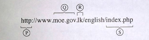 மேற்குறித்த URL இன் வெவ்வேறு பகுதிகளைக் குறிக்கப் பயன்படுத்தப்படும் முகப்படையாளங்கள் P தொடக்கம் S வரை கீழேயுள்ள பட்டியலில் உள்ள சரியான எழுத்துக்களுடன் பொருத்தமாக்குக.